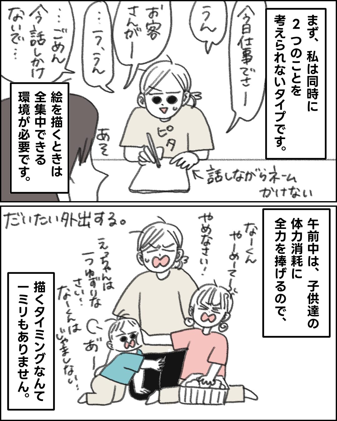 絵描き母の一日 その①2025.08.07エッセイ漫画育児漫画 絵描き母の一日 その①広告 あとがき子供達の体力ってすごいよね〜 最近3歳1歳になってますます体力ついてきました😇つづく👉🏻 7 コメントはこちら 同じカテゴリの記事 ワンオペ二児の母が「絵で収益化」できた話③ ワンオペ二児の母が「絵で収益化」できた話 ② ワンオペ二児の母が“絵で収益化”できた話① 私、頑張りすぎてたわ③ 私、頑張りすぎてたわ その② 私、頑張りすぎてたわ。 その① 毎回同じ時期にブチギレる理由 その② 毎回同じ時期にブチギレる理由 その① 3時間にわたる夫婦会議 その② 3時間にわたる夫婦会議 その① 人生2周目のボク 疲れすぎた夫婦のリアル その② 疲れすぎた夫婦のリアル その① 夫婦喧嘩の様子 その② 夫婦喧嘩の様子 その① 夫の報連相 その② 夫の報連相 その① 食育への価値観の違い その② 食育への価値観の違い その① 田舎に住んでよかった話 えっちゃんとデートした日 その② えっちゃんとデートした日 その① 手のかかる1歳児と手のかからない3歳児 姉の弟愛 私と傷だらけの愛車の物語 その② 私と傷だらけの愛車の物語 その① 3歳児の暇つぶし 手のかかる3歳児と手のかからない1歳児 育児界のアベンジャーズ 第一子女子は凶暴? おだつ娘 弟は姉の1番のファン 第二子育児でやめてよかったこと カップ麺すら食べられなかった日 天使ママになった話⑫ 天使ママになった話⑪ 天使ママになった話⑩ 天使ママになった話⑨ 天使ママになった話⑧ 天使ママになった話⑦ 天使ママになった話⑥ 天使ママになった話⑤ 天使ママになった話④ 天使ママになった話③ 子連れ母の昼ごはん 天使ママになった話② 天使ママになった話① 絵描き母の1日〜平日バージョン〜 コジュケイにもブチギレる女 母の息抜きも大事だよ 2人育児あるある トイトレ日記 〜完了編〜 3人目、どうする問題 その② 3人目、どうする問題 その① ワンオペ育児に悩んだ話 その② ワンオペ育児に悩んだ話 その① 絵描き母の一日 その② 絵描き母の一日 その① ディズニーにて当日起こったハプニング 産後ホルモンのはなし その② 産後ホルモンのはなし えっちゃんの胎内記憶 前の記事 ディズニーにて当日起こったハプニング 2025.07.31次の記事 絵描き母の一日 その② 2025.08.07アプリなら通知ですぐ読める! NAPBIZブログ This site is protected by reCAPTCHA and the Google Privacy Policy and Terms of Service apply.