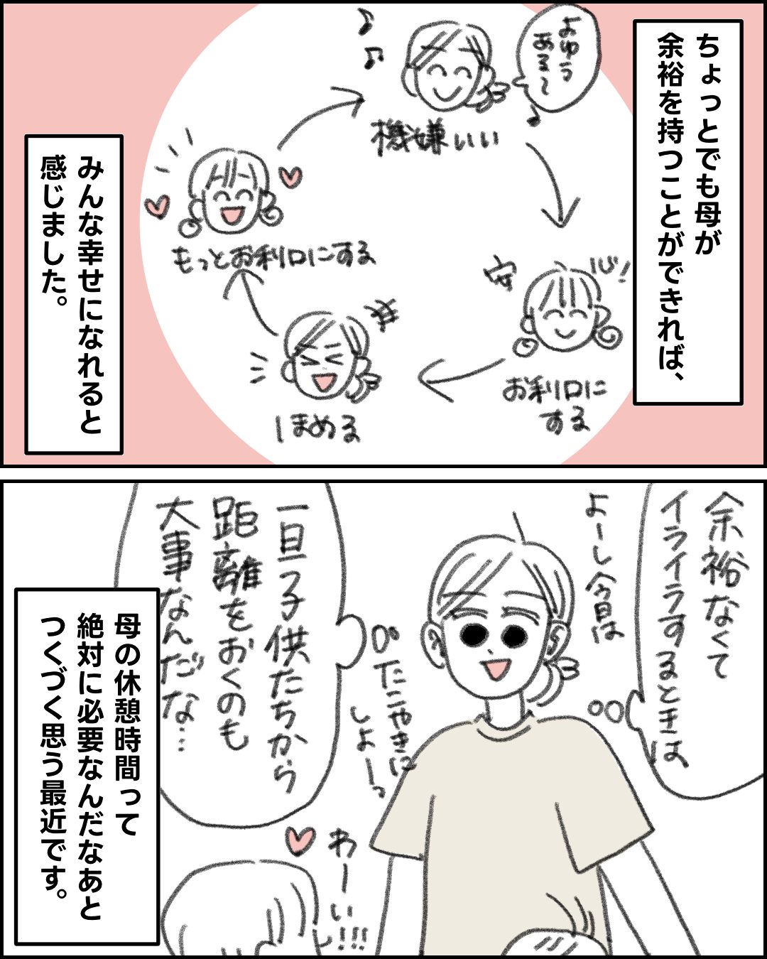 「あ私イライラしてるな」って思ったら、頑張って子供と距離取るのも大事だなって思いました😌