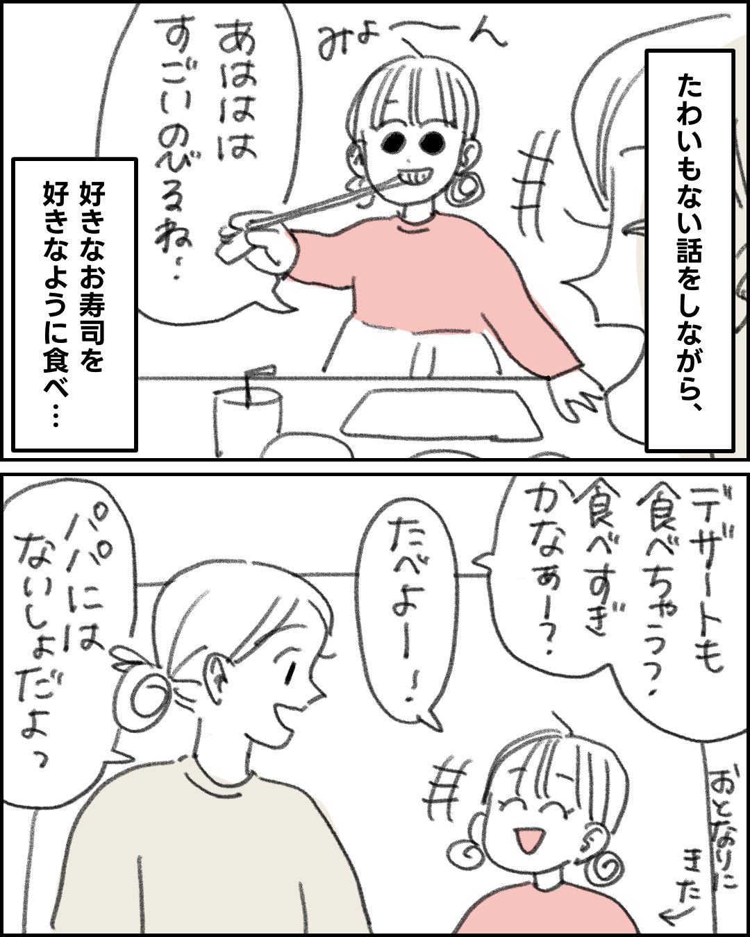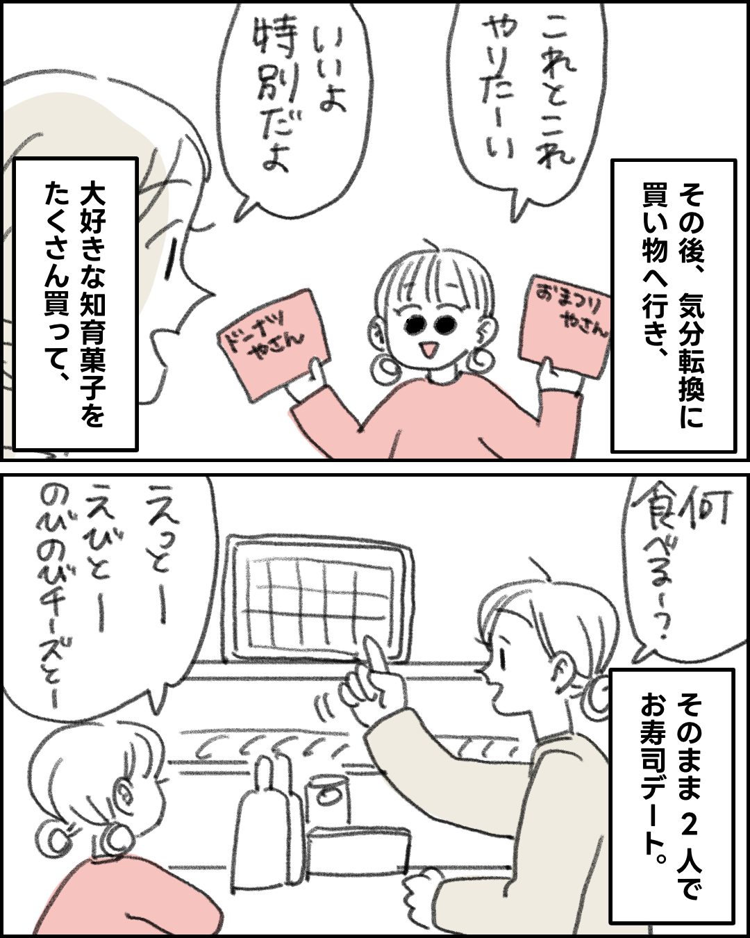えっちゃんとデートした日 その①2025.10.27エッセイ漫画育児漫画 えっちゃんとデートした日 その①広告 広告 あとがき続きます! 79 コメントはこちら 同じカテゴリの記事 ワンオペ二児の母が「絵で収益化」できた話③ ワンオペ二児の母が「絵で収益化」できた話 ② ワンオペ二児の母が“絵で収益化”できた話① 私、頑張りすぎてたわ③ 私、頑張りすぎてたわ その② 私、頑張りすぎてたわ。 その① 毎回同じ時期にブチギレる理由 その② 毎回同じ時期にブチギレる理由 その① 3時間にわたる夫婦会議 その② 3時間にわたる夫婦会議 その① 人生2周目のボク 疲れすぎた夫婦のリアル その② 疲れすぎた夫婦のリアル その① 夫婦喧嘩の様子 その② 夫婦喧嘩の様子 その① 夫の報連相 その② 夫の報連相 その① 食育への価値観の違い その② 食育への価値観の違い その① 田舎に住んでよかった話 えっちゃんとデートした日 その② えっちゃんとデートした日 その① 手のかかる1歳児と手のかからない3歳児 姉の弟愛 私と傷だらけの愛車の物語 その② 私と傷だらけの愛車の物語 その① 3歳児の暇つぶし 手のかかる3歳児と手のかからない1歳児 育児界のアベンジャーズ 第一子女子は凶暴? おだつ娘 弟は姉の1番のファン 第二子育児でやめてよかったこと カップ麺すら食べられなかった日 天使ママになった話⑫ 天使ママになった話⑪ 天使ママになった話⑩ 天使ママになった話⑨ 天使ママになった話⑧ 天使ママになった話⑦ 天使ママになった話⑥ 天使ママになった話⑤ 天使ママになった話④ 天使ママになった話③ 子連れ母の昼ごはん 天使ママになった話② 天使ママになった話① 絵描き母の1日〜平日バージョン〜 コジュケイにもブチギレる女 母の息抜きも大事だよ 2人育児あるある トイトレ日記 〜完了編〜 3人目、どうする問題 その② 3人目、どうする問題 その① ワンオペ育児に悩んだ話 その② ワンオペ育児に悩んだ話 その① 絵描き母の一日 その② 絵描き母の一日 その① ディズニーにて当日起こったハプニング 産後ホルモンのはなし その② 産後ホルモンのはなし えっちゃんの胎内記憶 前の記事 手のかかる1歳児と手のかからない3歳児 2025.10.18次の記事 えっちゃんとデートした日 その② 2025.10.29アプリなら通知ですぐ読める! NAPBIZブログ This site is protected by reCAPTCHA and the Google Privacy Policy and Terms of Service apply.