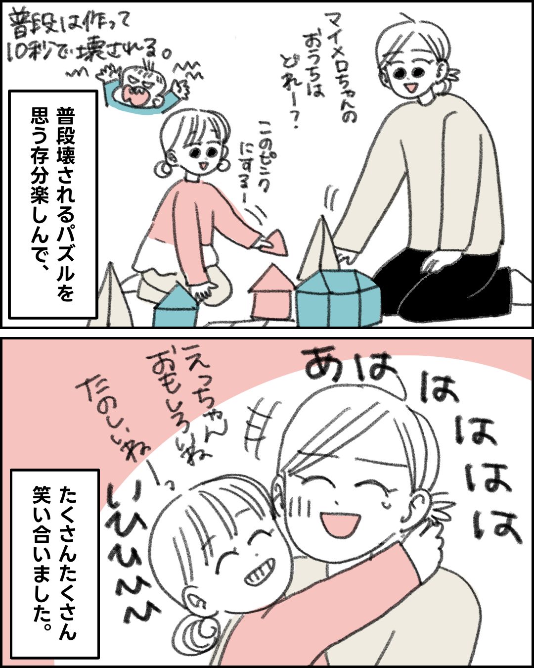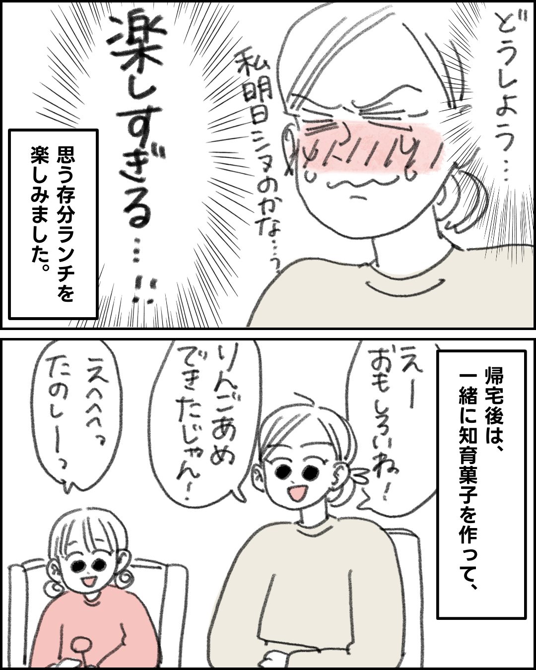 なーくんがいるとどうしても余裕がなくなって怒ってしまうことも多いけど、1人だとこんなに成長して楽なんだ…🩷と思いました。